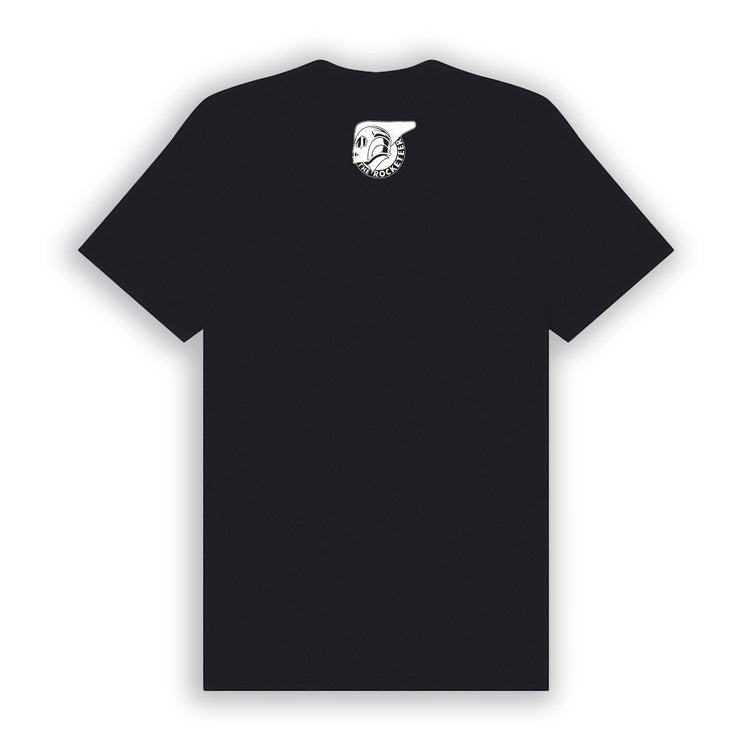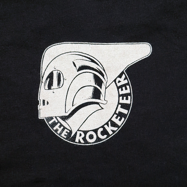 Located just a stone's throw from the Chaplin Airdrome is the world famous Bulldog Cafe! Local hangout for stunt pilots from the Bigelow Air Circus, including our barnstorming hero, Cliff Secord – AKA The Rocketeer. This officially licensed double-sided t-shirt celebrates Dave Stevens's iconic creation with a beautiful new design by artist Nick Prinzing on the front, and a Rocketeer badge logo on the back. Features a stylish red hem tag on the left sleeve.