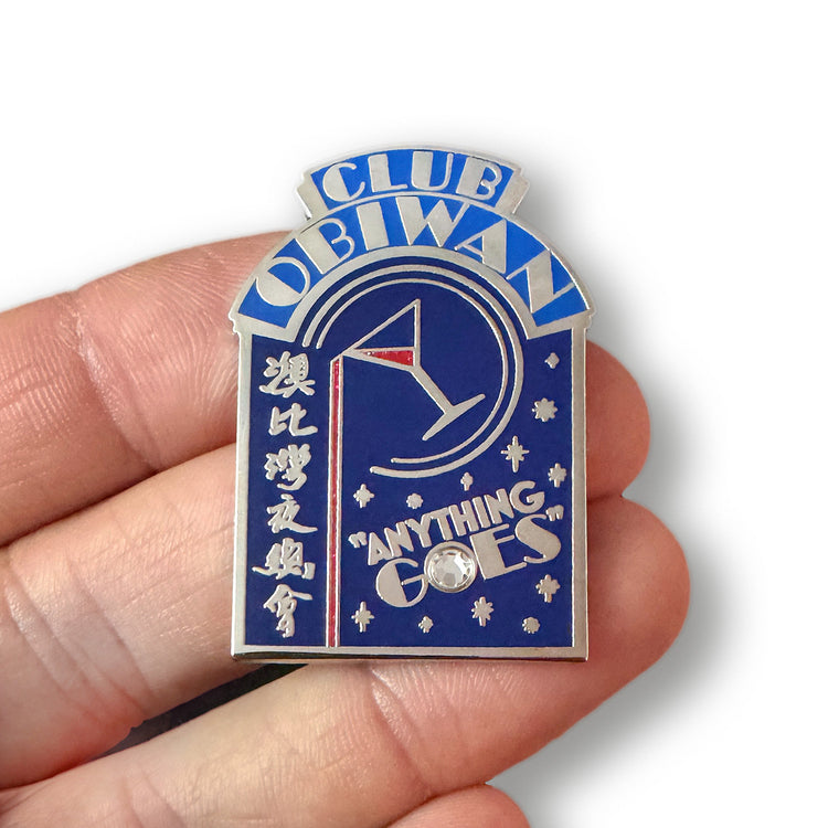 Straight from the gift shop of the infamous Club Obi Wan, our "Anything Goes" hard enamel pin includes glitter accents, and even a "diamond" gemstone easter egg.