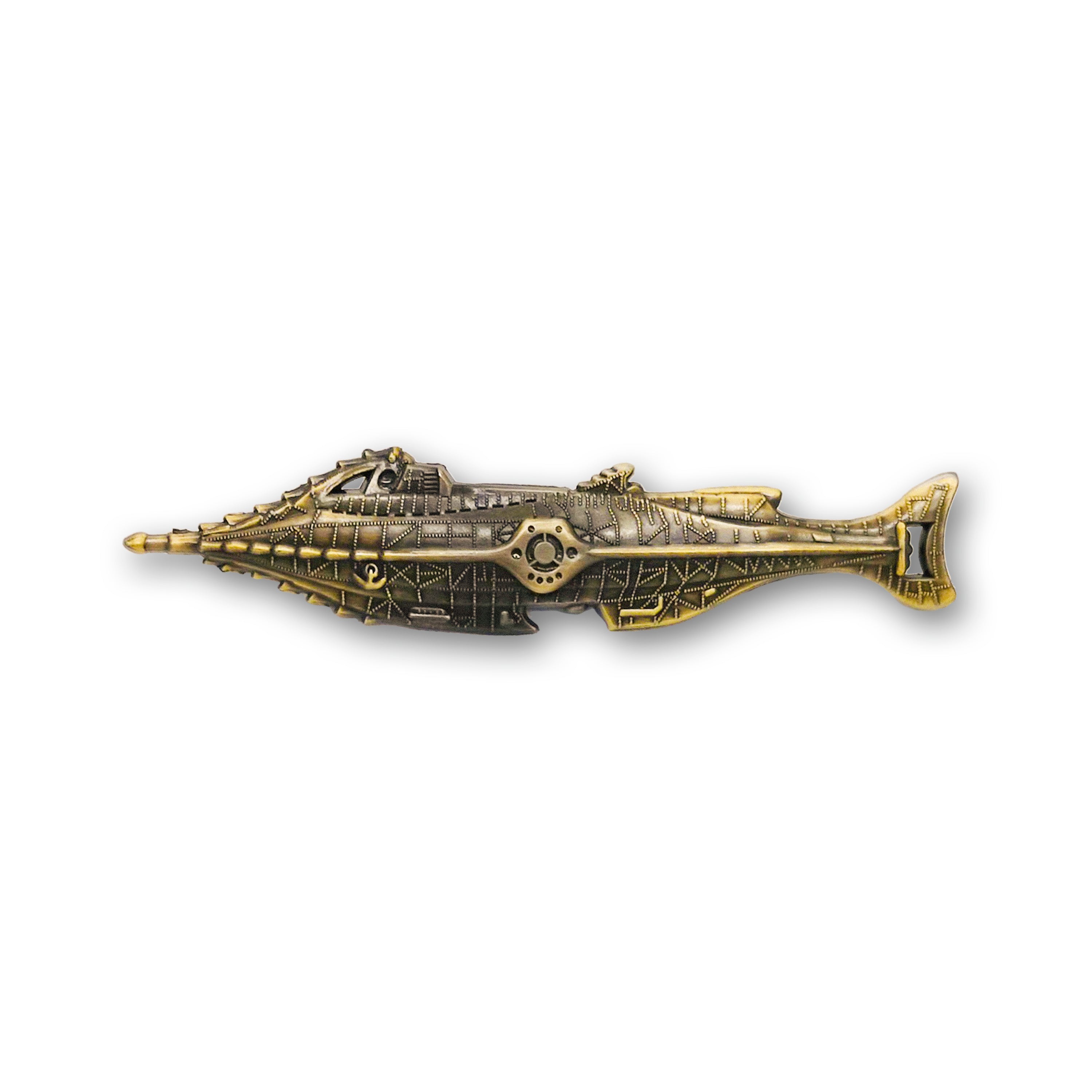 The uncharted sea awaits, and you can’t travel 20,000 leagues without your very own submarine! Jules Verne and Harper Goff would be proud to see you sporting our premium 3D NAUTILUS pin! Complete with an antique gold finish and incredibly accurate detail! Just watch out for those pesky giant squid… but at a whopping 3.5” across, our biggest pin should keep you safe and sound!