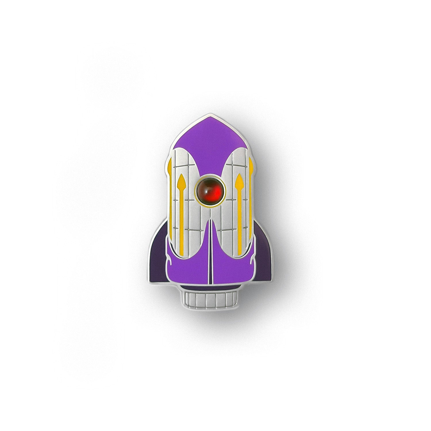 This officially licensed 1.75” hard enamel pin brings Dave Stevens’s original Rocketeer rocket-pack roaring to life! It’s the classic retro-futuristic comic book version — bold purple finish, matte silver nickel, and a 3D transparent ruby-red “jewel” just like the original. Also available in a black & white artist's edition.