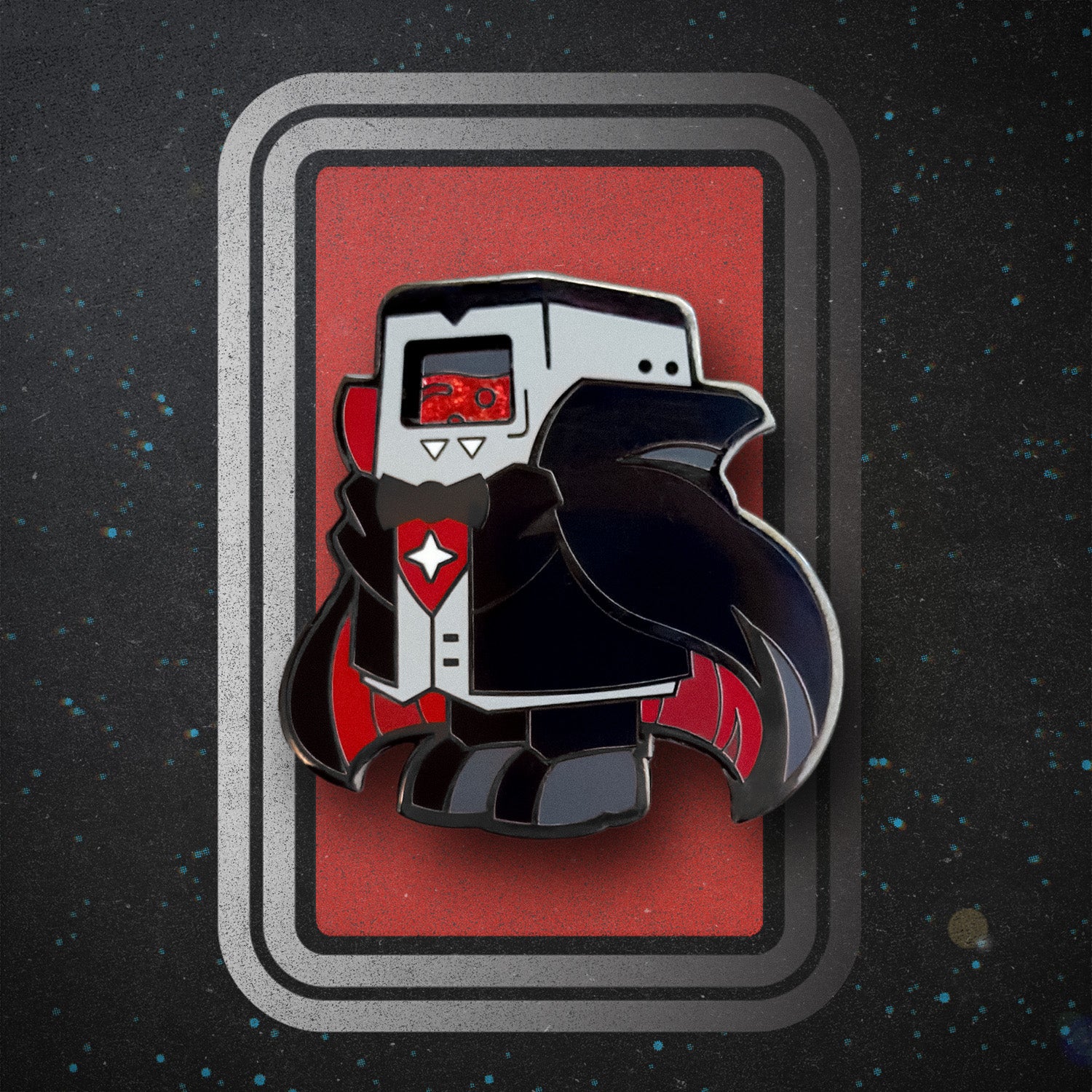 Meet Gonkula, the spookiest new addition to your pin collection! This enamel pin features a playful mashup of a classic Gonk droid and Dracula. Complete with fangs, cape, and a sinister yet adorable expression – Gonkula even doubles as a walking blood tank with glittery red accents. Perfect for horror and sci-fi fans who want to add a dash of nerdy gothic charm to their outfit or bag. Crafted in durable hard enamel with secure backing, Gokula is ready to haunt your pin collection! Comes pinned to a retro-styled backing card with silver foil accents.