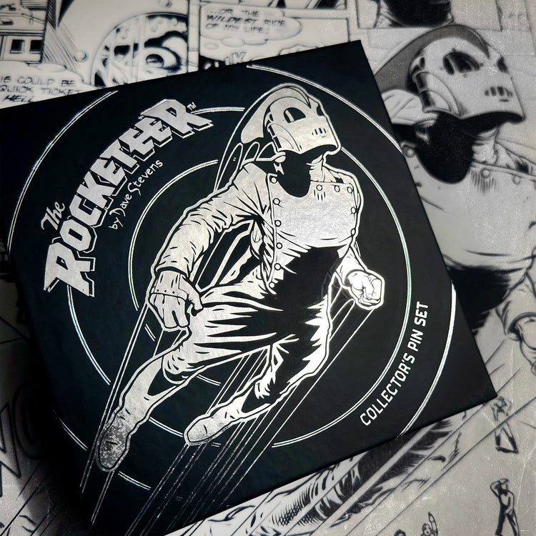 Okkto is thrilled to reveal our brand new, limited edition Collector’s Pin Sets celebrating The Rocketeer comic book! Designed in collaboration with our friends at MacGuffin Goods, each box set includes five new and exclusive Rocketeer pins pulled straight from Dave Stevens's comic book art: